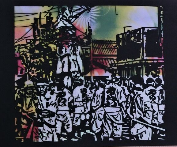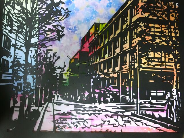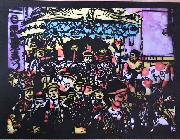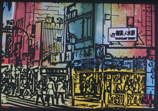 門前仲町に住んでいたので、あの頃撮りためた写真から作った切り絵です。